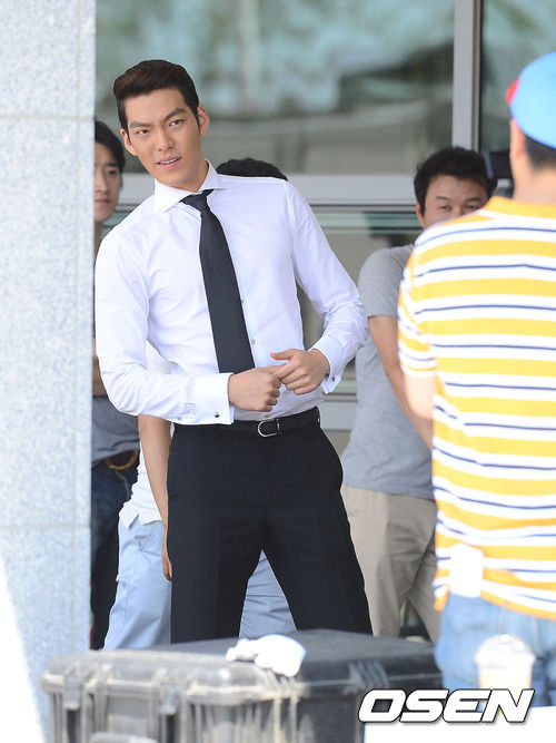 11일 오후 울산 하늘공원에서 진행된 영화 '친구2'(곽경택 감독) 현장공개에서 김우빈이 유오성 촬영장면을 구경하고 있다.