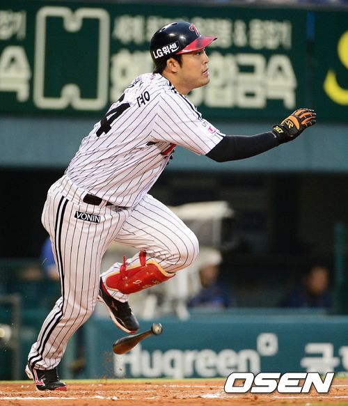 11일 오후 서울 잠실야구장에서 열린 2013 한국야쿠르트 세븐프로야구 LG 트윈스와 NC 다이노스의 경기, 1회말 1사 2,3루에서 LG 정의윤이 선제 득점으로 이어진 내야땅볼을 치고 있다.