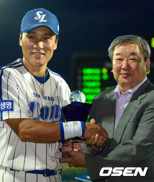 11일 오후 오후 대구 시민운동장에서 열린 '2013 한국야쿠르트 세븐프로야구' 삼성 라이온즈와 SK 와이번스의 경기 5회말 클리닝 타임, 한국프로야구 개인 통산 최다 352홈런 신기록 시상식 및 축하 이벤트가 열렸다.