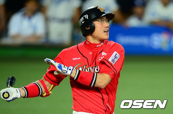 11일 오후 대구 시민운동장에서 열린 '2013 한국야쿠르트 세븐프로야구' 삼성 라이온즈와 SK 와이번스의 경기, 6회초 1사 3루 SK 박정권의 우익수 희생플라이를 때리고 있다.