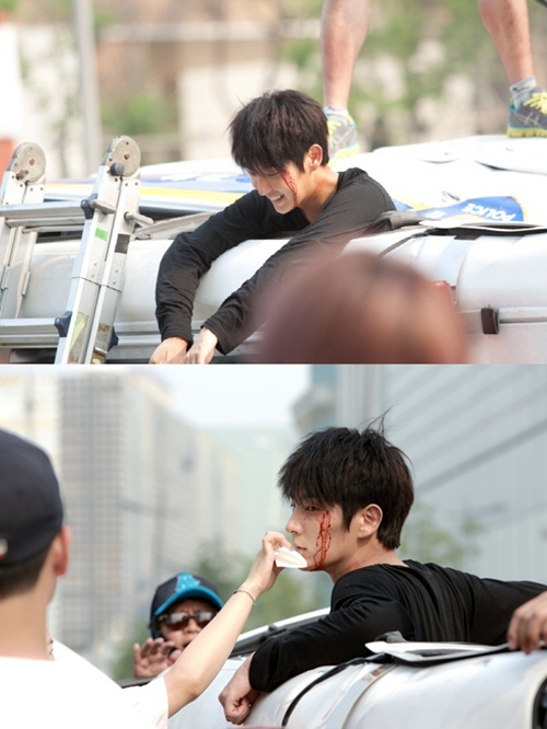 12일 이준기의 소속사를 통해 공개된 비하인드 컷에는 무더위 속에 얼굴에 피를 묻히고 촬영에 열중하고 있는 이준기의 모습이 담겨 있다. 이준기는 피 범벅이 된 채 꽃 미소를 발산하며 매력을 뽐냈다.