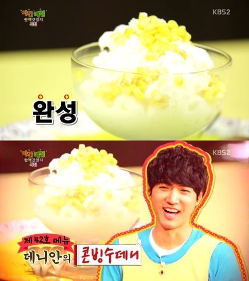 데니안은 지난 11일 방송된 KBS 2TV '해피투게더' 야간매점에서 '콘빙수데니'를 선보였다.
