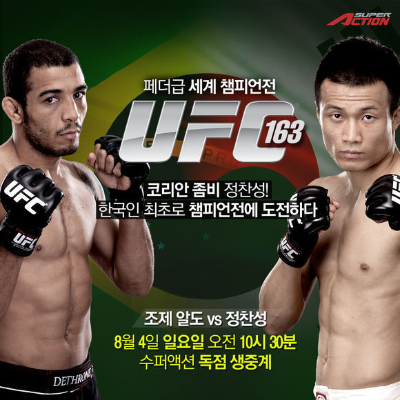 한국 최초로 UFC 챔피언전에 나서는 정찬성의 경기는 당일 오전 10시 30분에 액션전문채널 수퍼액션으로 생중계 된다.