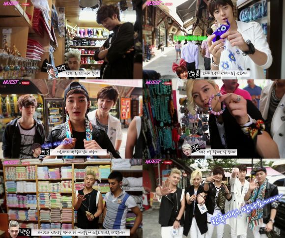 지난 11일 여러 온라인 커뮤니티 등을 통해 터키 공연 중 팬들에게 줄 선물을 고르는 뉴이스트 멤버들의 모습이 담긴 영상이 게재됐다. 이 영상에서 멤버들은 팬들의 사랑에 보답할 수 있는 일이 무엇인지 고민하다 바쁜 공연 일정 중에 시간을 쪼개 쇼핑에 나섰다.