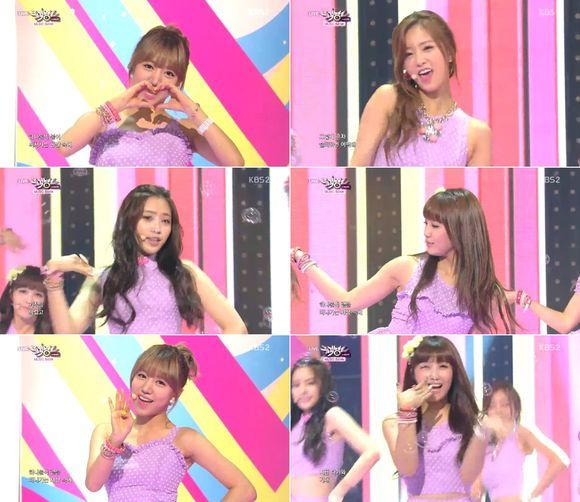 에이핑크는 12일 방송된 KBS 2TV '뮤직뱅크'에 출연해 '러블리 데이(LOVELY DAY)'와 '노노노(NO NO NO)'를 차례로 열창했다.