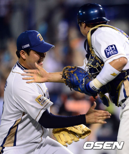 경기 종료 후 승리를 거둔 NC 이민호와 김태군이 기뻐하고 있다. / youngrae@osen.co.kr