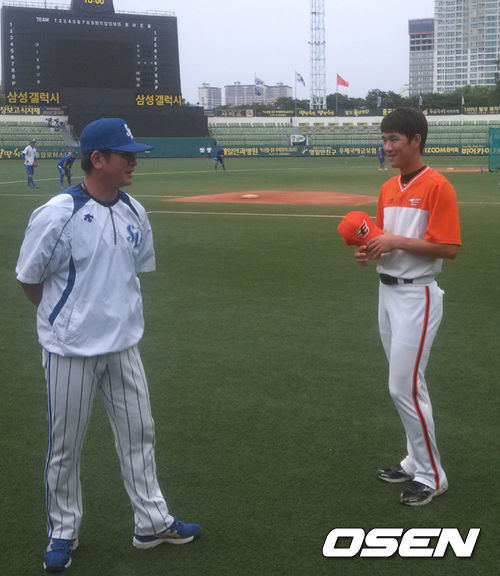지난 12일 삼성-한화전이 열린 대구구장. 경기 전 그라운드에서 한화 외야수 송주호(25)가 삼성 류중일(50) 감독을 찾아 인사했다. 류 감독은 송주호를 단번에 알아보고는 "오랜만이다"고 인사를 건네며 "외야로 포지션을 바꿨더라"고 말하며 어깨를 두드려줬다. 송주호가 삼성 신고선수 내야수로 몸 담고 있을 때 류 감독이 삼성의 수비·작전코치였다.