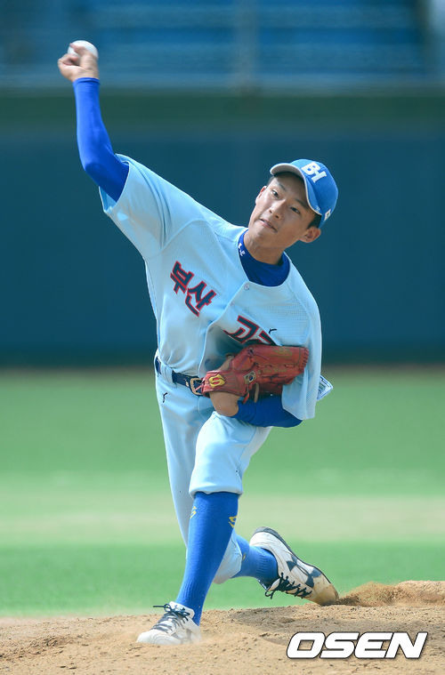 13일 오전 부산 구덕야구장에서 열린 2013 고교야구 광역리그 부산고와 포철고의 경기, 1회말 부산고 유진욱이 역투하고 있다.
