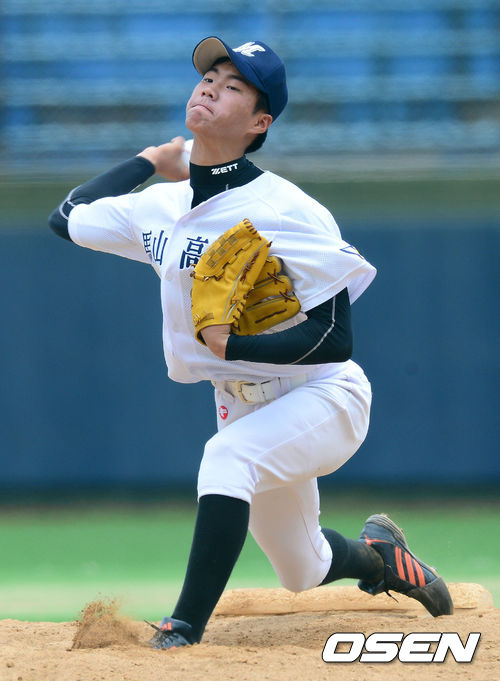 13일 오후 부산 구덕야구장에서 열린 2013 고교야구 광역리그 부산공고와 마산고의 경기, 1회초 마산고 류재인이 역투하고 있다.