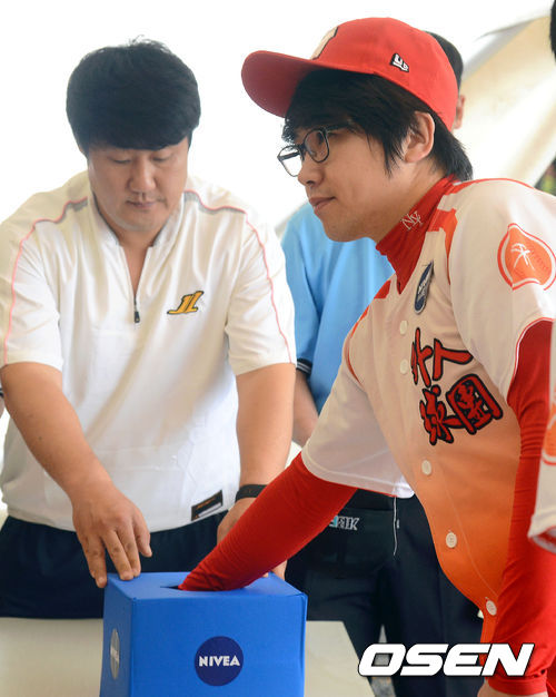13일 오후 경기도 김포시 송일야구장에서 열린 '제4회 니베아 맨 컵 전국생활체육 야구대회' 16강 외인구단-탑앤탑 경기, 우천으로 인해 경기진행이 어려워 두 팀이 8강 진출을 위한 제비뽑기가 진행됐다.