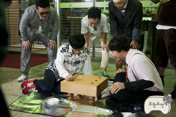 백팀은 팀장 정형돈과 유재석, 박명수의 구성으로 노련미를 뽐낸다. 거기에 지난주에 이어 지원사격에 나선 데프콘이 합류, 특유의 지략을 발휘해 게임을 풀어나간다.