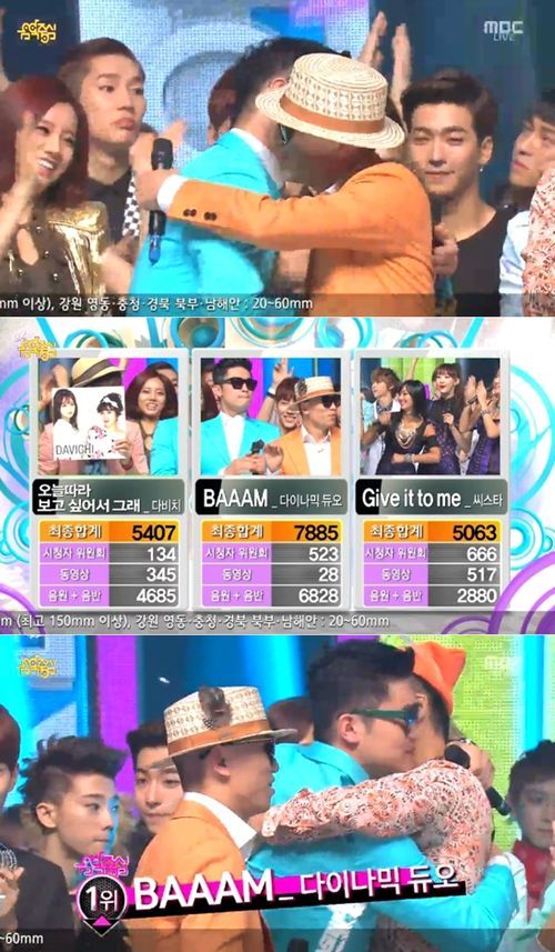 이날 1위 후보에는 다이나믹듀오 외에 다비치 ‘오늘따라 보고싶어서 그래’, 씨스타 ‘기브 잇 투 미(GIVE IT TO ME)’가 올랐다.