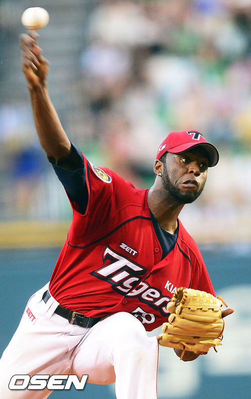 13일 오후 서울 잠실구장에서 열린 2013 한국야쿠르트 세븐프로야구 두산 베어스와 KIA 타이거즈의 경기, KIA 선발 소사가 힘차게 공을 뿌리고 있다.