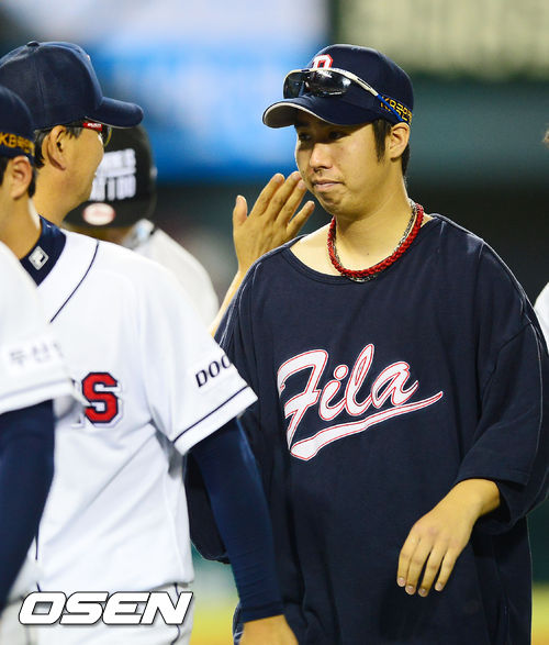 경기를 마치고 두산 승리 투수 유희관이 김진욱 감독과 하이파이브를 하고 있다. / rumi@osen.co.kr