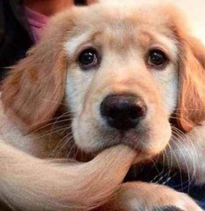 공개된 사진에는 자신의 꼬리를 입에 문 채 카메라를 응시하고 있는 한 강아지의 모습이 나온다. 꼬리를 물고 있는 강아지의 표정이 애처로운 모습이다.