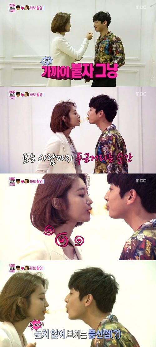 [OSEN=방송연예팀] 가상부부 고준희와 정진운이 풍선껌 키스를 선보였다.