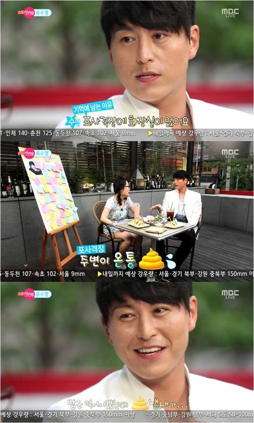 류수영은 14일 방송된 MBC 연예정보프로그램 ‘섹션TV 연예통신’에서 군대에서 먹은 가장 맛있는 음식을 묻는 질문에 “야외훈련에서 먹은 전투식량”이라면서 “포사격장에 화장실이 없어서 주변에 똥이 많았다”고 뒷이야기를 전했다.