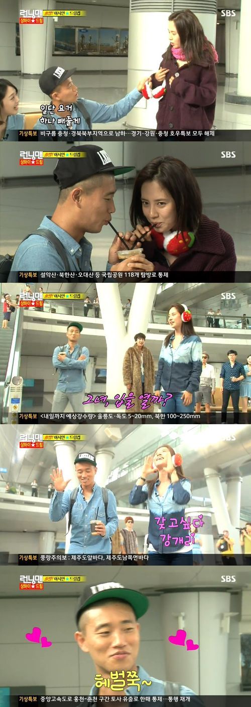 가장 먼저 멤버들은 공통적으로 쥐포를 사오라고 했고 이어 개리는 송지효에게 음료를 사오라고 했다. 이에 송지효는 달려가서 음료를 사왔고 개리는 음료에 빨대를 두 개 꽂아 송지효와 알콩달콩 나눠 먹었다.