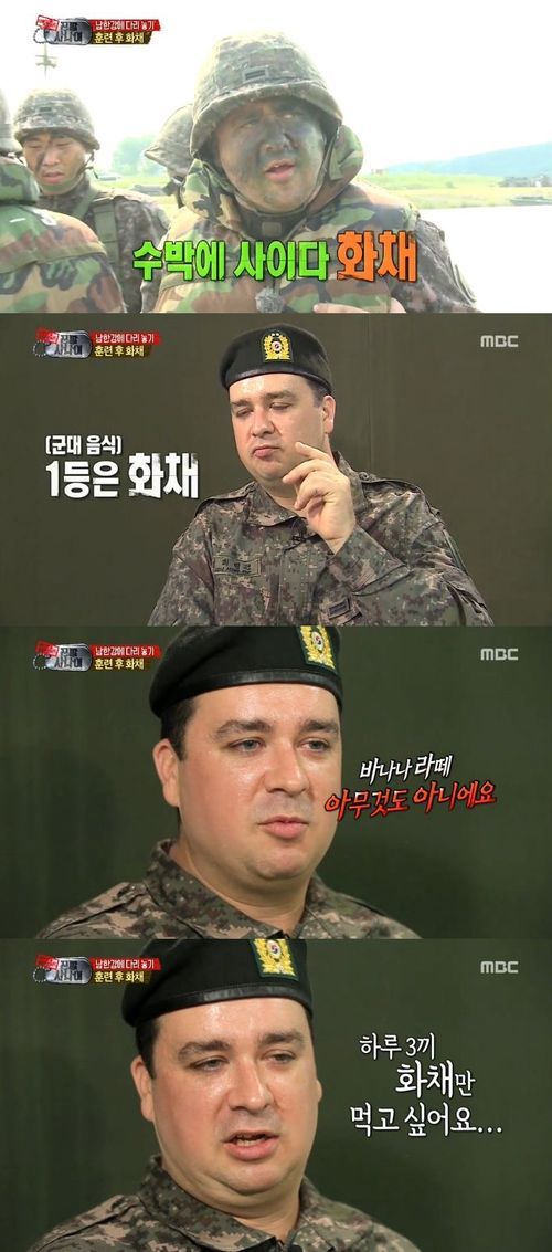 샘 해밍턴은 14일 오후 방송된 MBC 예능프로그램 '일밤-진짜사나이'에서 모든 훈련이 끝난 후 나온 시원한 화채를 처음 맛보고 "군대 음식 중 1등은 화채"라고 말했다.