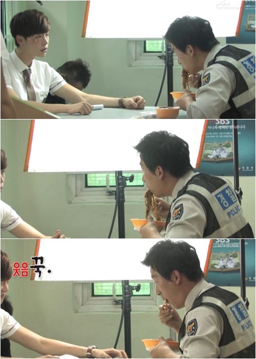 영상은 극 중 경찰관 운승 역으로 출연하는 여호민이 입에서 자장면을 뱉으며 놀라워하는 장면이다. 그야말로 자장면 먹방.