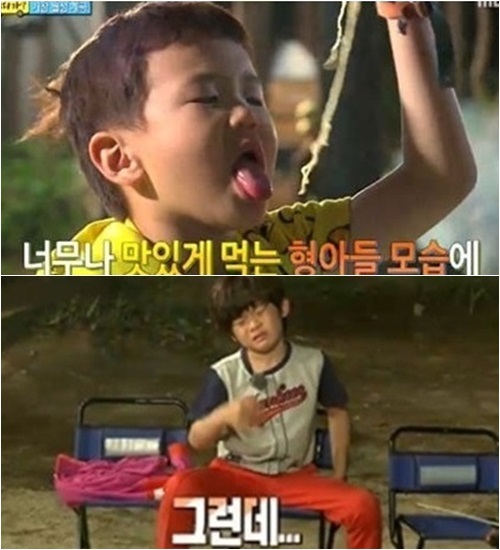 14일 방송된 MBC 예능프로그램 '일밤-아빠 어디가'에서는 아빠와 아이들이 경상남도 거창군 북상면 월성계곡에서 다섯 부자, 부녀가 계곡에서 캠핑을 즐기는 모습이 전파를 탄 가운데, 윤후의 새로운 먹방, 성준의 뜨거운 눈물이 등장했다. 윤후의 먹방은 엄마를 향한 그리움의 고통을 잃는 에너지가 됐고, 성준은 순해보여도 내면에 승부욕이 넘치고 있음이 눈물을 통해 드러났다.