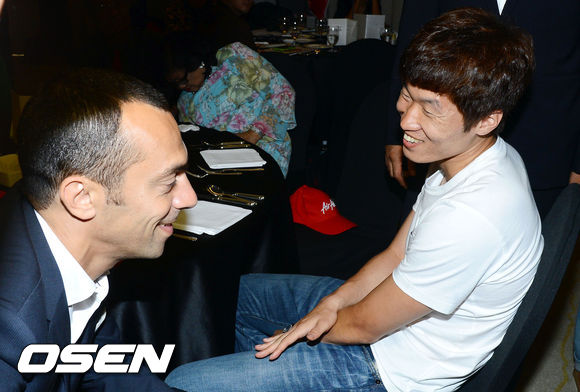 15일 오전 부산 해운대 파라다이스 호텔에서 진행된 에어아시아 엑스 '부산-쿠알라룸푸르 노선 취항 기자간담회'에서 박지성이 관계자와 이야기를 나누고 있다.