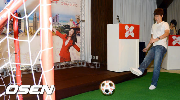 15일 오전 부산 해운대 파라다이스 호텔에서 진행된 에어아시아 엑스 '부산-쿠알라룸푸르 노선 취항 기자간담회'에서 박지성이 이벤트에 참여하고 있다.