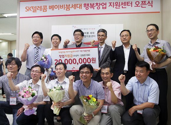 SK텔레콤이 베이비붐 세대 창업에 동행한다. SK텔레콤은 베이비붐 세대의 ICT 기반 창업 지원을 위한 ‘베이비붐 세대 행복창업지원센터’를 15일 오픈하고, 지원 대상 최종 10개 팀을 선정해 본격적인 양성과정을 시작한다고 밝혔다.