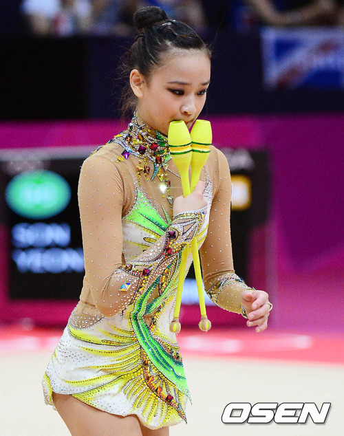 손연재(19, 연세대)가 깔끔하게 리본과 곤봉연기를 소화하며 개인종합 6위에 올랐다.