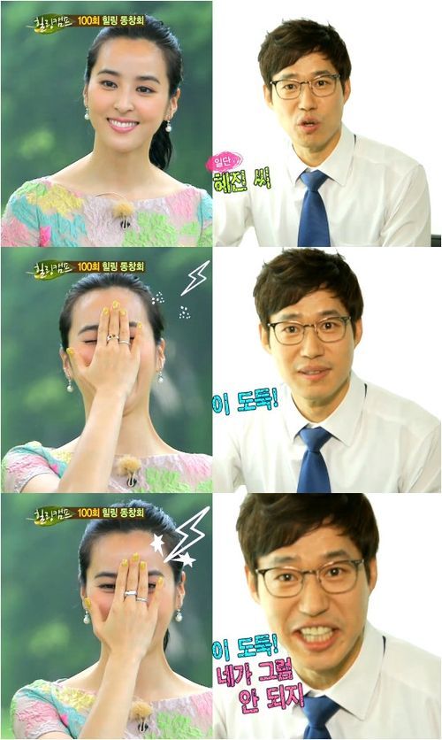 그는 8살 연하 기성용과 결혼한 한혜진을 염두한 듯 “도둑”이라고 외친 후 “네가 그러면 안된다”고 말해 웃음을 자아냈다.