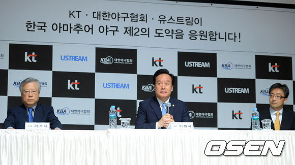 한편 이 회장은 이날 협약식을 통해 아마추어 야구 지원에 발 벗고 나선 KT측에 대한 감사함을 표시했다. 이 회장은 “KT의 이석채 회장께서 10구단을 창설할 때 공약했던 아마추어 야구에 대한 지원을 해주셨다”면서 “KT가 대기업으로서, 또 프로구단에 매몰되지 않고 프로의 뿌리라고 할 수 있는 아마추어 야구를 동시에 살려야 한다는 철학을 담아 결단을 해준 것에 대해 다시 한 번 감사드린다”고 말했다.