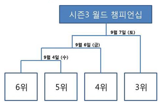 라이엇게임즈가 16일(한국 시간) 발표한 기준에 따르면, 한국은 총 3개 팀이 오는 9월부터 미국 LA에서 벌어지는 세계 대회인 월드 챔피언십에 진출한다. LOL 시즌3의 대회 성적에 따라 주어지는 ‘서킷포인트’를 가장 많이 획득한 상위 두 팀은 직행하며, 3번째 진출팀은 별도의 선발전을 통해 가려지게 된다.