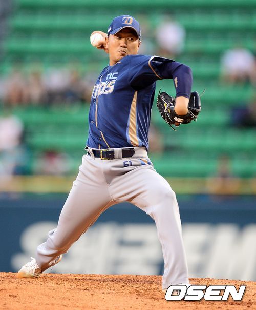 16일 오후 서울 잠실야구장에서 열린 '2013 한국야쿠르트 세븐 프로야구' 두산 베어스와 NC 다이노스의 경기, 1회말 NC 선발 손민한이 역투하고 있다.