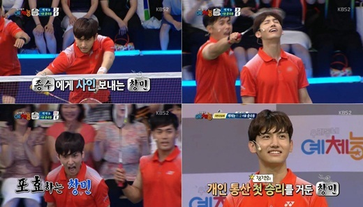 이에, 최강창민-이종수팀은 짜릿한 역전승을 거머쥐었다. 최강창민과 이종수 팀은 팀 내 최고 연습량을 입증하듯 경기 내내 찰떡호흡으로 안정된 경기를 선보였다. 이종수는 경기 중 배드민턴 라켓으로 최강창민의 머리를 쓰담쓰담하는 등 환상의 호흡을 연출한 것. 특히, 역전이 되자 초강력 레이저눈빛으로 변신하며 '눈빛 브라더스'에 등극, 웃음을 선사했다.