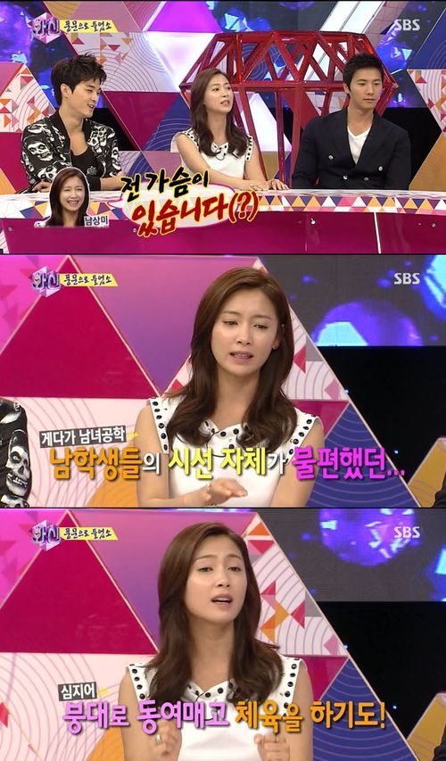 이어 “그리고 내가 중학교, 고등학교 남녀공학을 나왔는데 내가 정말 전교에서 체육을 1등할 정도로 좋아했다. 그런데 남학생들의 시선을 받는 게 싫어 붕대로 동여매고 체육을 하기도 했다”고 가슴에 대한 콤플렉스를 말했다.
