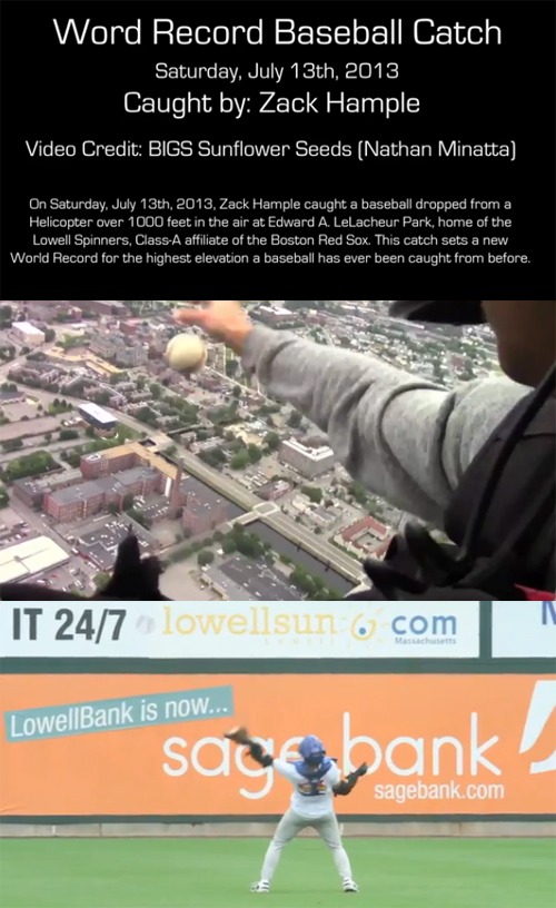 햄플은 320m 상공에서 떨어지는 공을 캐치하며 지난 1930년 개비 할넷이 기록한 종전 세계 기록(244m)를 경신했다. 햄플은 유사시에 대비해 안전 장비를 모두 갖추고 있다.