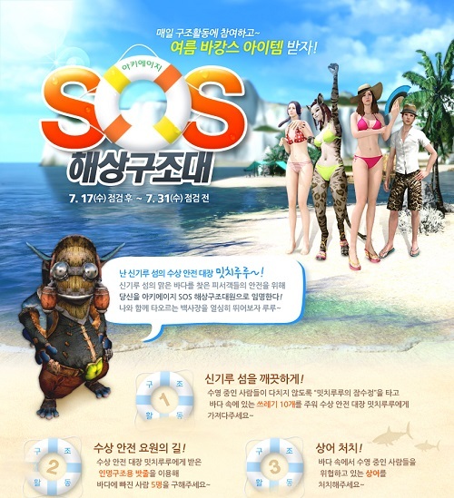 아키에이지는 17일 2차 대규모 업데이트와 여름 휴가철을 맞아 게임 내에서 바캉스를 즐기를 'SOS 해상구조대' 이벤트 실시를 공지했다.