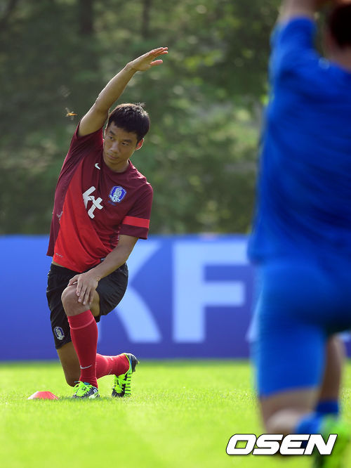 17일 오후 경기도 파주 국가대표 축구 트레이닝 센터(NFC)에서 열린 축구 대표팀 공개훈련에서 염기훈이 스트레칭을 하고 있다.