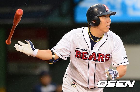 17일 오후 서울 잠실야구장에서 열린 '2013 한국야쿠르트 세븐 프로야구' 두산 베어스와 NC 다이노스의 경기, 1회말 무사 2,3루에서 두산 김현수가 우익수 플라이를 날리고 있다. 3루주자 이종욱은 태그업, 선제 득점에 성공.