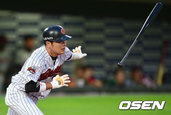 17일 오후 부산 사직구장에서 '2013 한국야쿠르트 세븐 프로야구' 롯데 자이언츠와 LG 트윈스의 경기가 열렸다. 3회말 롯데 공격 무사 1루 상황 8번 문규현이 우전안타를 날리고 있다.