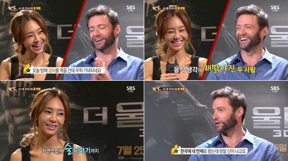 휴 잭맨은 17일 방송된 SBS '한밤의 TV연예'에 "영화에서 육중한 몸을 유지해야 했기 때문에 하루에 5~6000칼로리를 섭취했는데 갈비가 좋았다. 오늘 밤에도 갈비를 먹을 예정인데 기대가 된다"고 말했다.