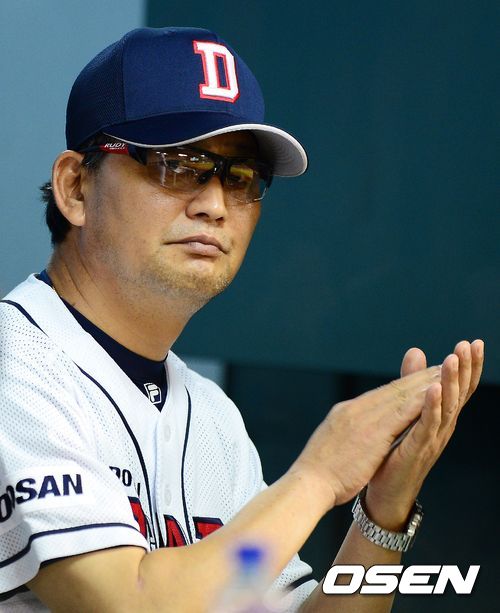 9회초 두산 김진욱 감독이 더그아웃에서 박수를 치며 선수들을 격려하고 있다. /jpnews@osen.co.kr