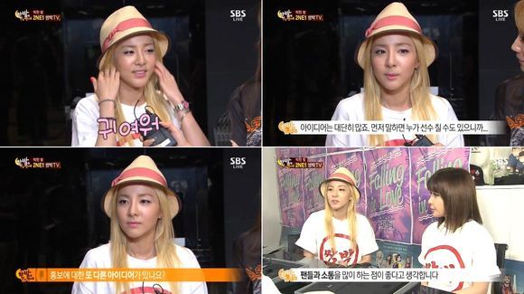 산다라박은 17일 방송된 SBS '한밤의 TV연예'에 출연해 "홍보 아이디어는 굉장히 많다. 하지만 먼저 말하면 누가 선수칠 수도 있으니까 공개하지 않겠다"고 말해 웃음을 자아냈다.