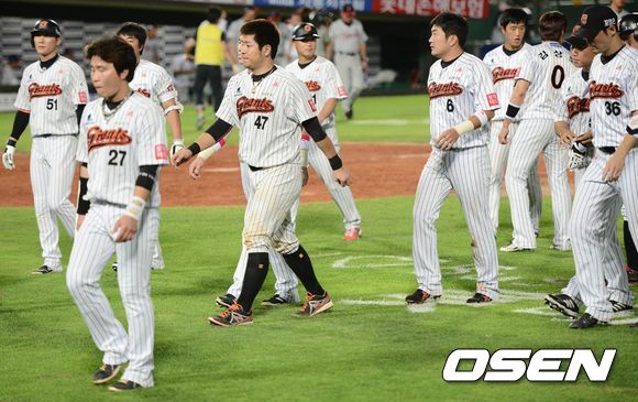롯데 선수들이 팬들에게 인사한 뒤 더그아웃을 나서고 있다. /dreamer@osen.co.kr