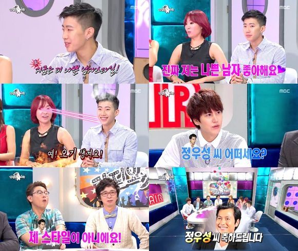 이에 MC 규현이 "그러면 정우성씨 같은 분한테도 도전을 해봐라"고 말하자 "정우성씨는 내 스타일이 아니다"라고 거절해 현장을 웃음바다로 만들었다.