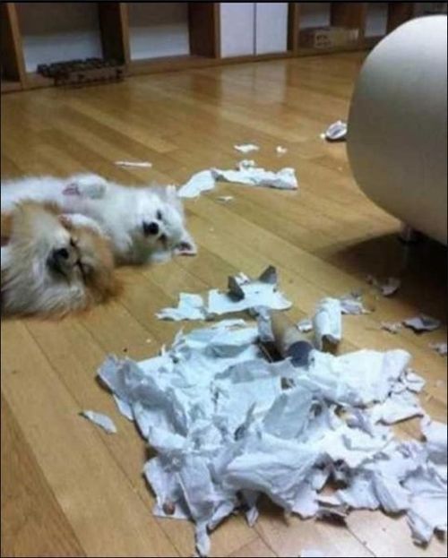 최근 온라인 커뮤니티를 중심으로 '안한 척 끝판왕'이라는 제목의 사진이 화제가 되고 있다. 사진 속에는 휴짓조각이 나뒹굴고 갈갈이 찢겨 엉망이 된 집의 모습이 보인다. 지저분한 마루바닥 위에는 강아지 두 마리가 나란히 누워있어 범인임을 짐작케 한다.
