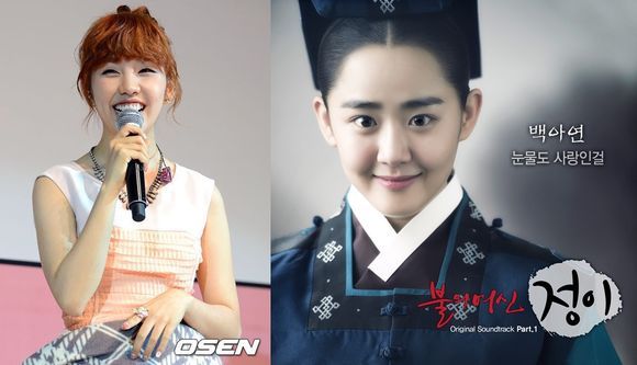 백아연은 18일 오후 12시 ‘불의 여신 정이’의 첫 번째 OST ‘눈물도 사랑인걸’을 공개했다. 백아연의 OST 참여는 드라마 ‘청담동 앨리스’, ‘남자가 사랑할 때’에 이어 세 번째.