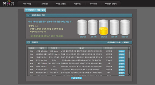 ‘스토리헬퍼’는 영화나 애니메이션의 스토리 얼개를 넣고 시뮬레이션 해보면 기존 작품의 스토리와의 유사성 정도도 알려준다. 예를 들면 '아바타’는 ‘늑대와 춤을’과 87%, '라이언 일병 구하기'는 '스타워즈4'와 80%의 유사성을 보인다. ‘스토리헬퍼’는 위와 같은 일종의 필터링 시스템으로 독창적인 창작물 활동을 가능케 지원한다.