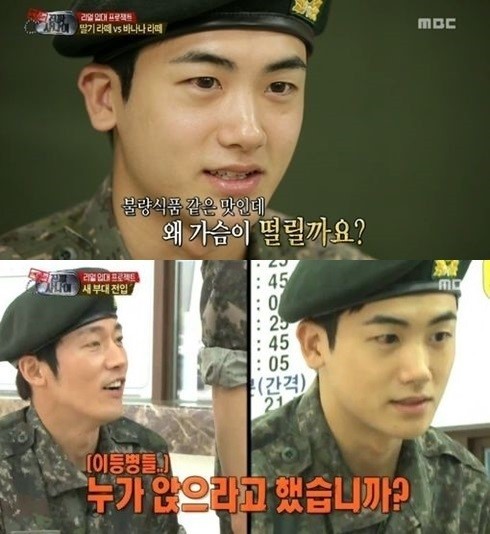 곱상한 얼굴 만큼 군대라는 곳은 그와 어울리지 않아 보였다. 난생 처음 대보는 관등성명에 쩔쩔매는가 하면 훈련을 받기 전 본의 아니게 대형의 기준이 됐다 전우들에게 단체 기합을 선물하고, 국기에 대한 경례를 할 때도 공손히 가슴에 오른손을 가져다 대며 잘못된 예를 보여줬다.