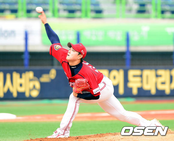 18일 오후 경북 포항시 포항야구장에서 열린 '2013 퓨처스리그 올스타전' 남부리그와 북부리그의 경기 1회말 남부리그 선발 김윤동이 역투하고 있다.